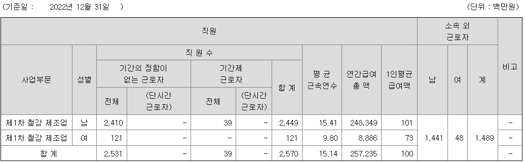 | 사업부문 | 성별 | 직원수 | 평균근속연수 | 평균연봉(백만) |