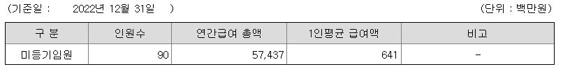 미등기임원의 평균연봉은 6억 4100만원이고 직원수는 90명입니다.