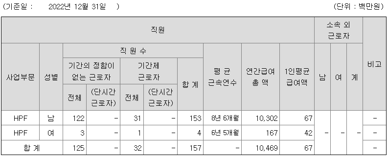| 사업부문 | 성별 | 직원수 | 평균근속연수 | 평균연봉(백만) |