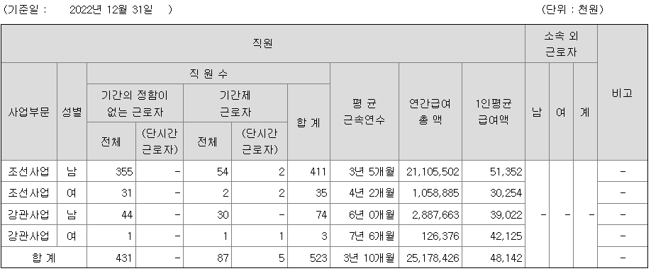 SK오션플랜트 연봉 2022년 기준 공시자료