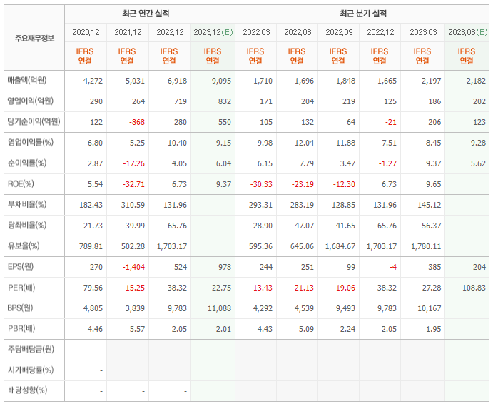 2022년 실적은 6918억, 영업이익은 719억입니다. 그리고 영업이익률은 10.40%입니다.