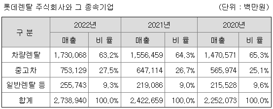 | 일반렌탈 (운용렌탈, 금융렌탈) 및 소비재렌탈 |