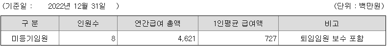 미등기임원의 평균연봉은 7억 2700만원이고 직원수는 8명입니다.