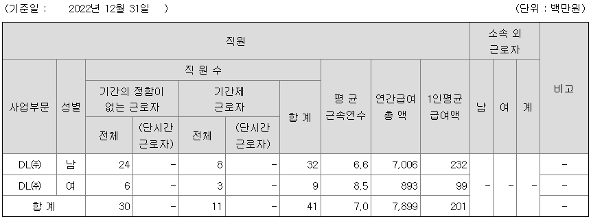 | DL(주) | 남 | 32 | 6.6 | 232 |