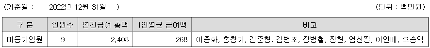 미등기임원의 평균연봉은 2억 6800만원이고 직원수는 9명입니다.