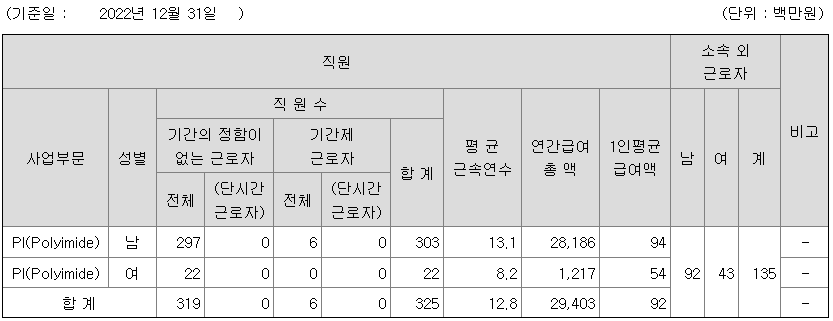 | 사업부문 | 성별 | 직원수 | 평균근속연수 | 평균연봉(백만) |