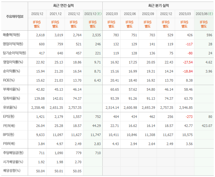 2022년 실적은 2764억, 영업이익은 521억입니다. 그리고 영업이익률은 18.86%입니다.