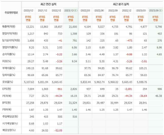 2022년 실적은 1조 8657억, 영업이익은 733억입니다. 그리고 영업이익률은 3.93%입니다.
