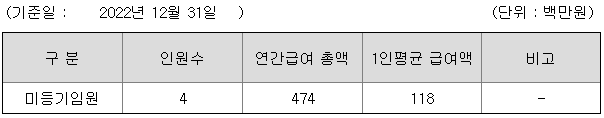 미등기임원의 평균연봉은 1억 1800만원이고 직원수는 4명입니다.