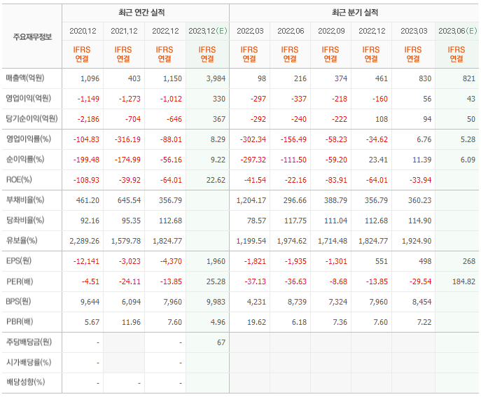 2022년 실적은 1150억, 영업이익은 -1012억입니다. 그리고 영업이익률은 -88.01%입니다.