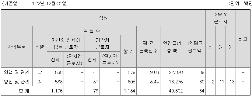 | 영업 및 관리 | 남 | 579 | 9.03 | 39 |