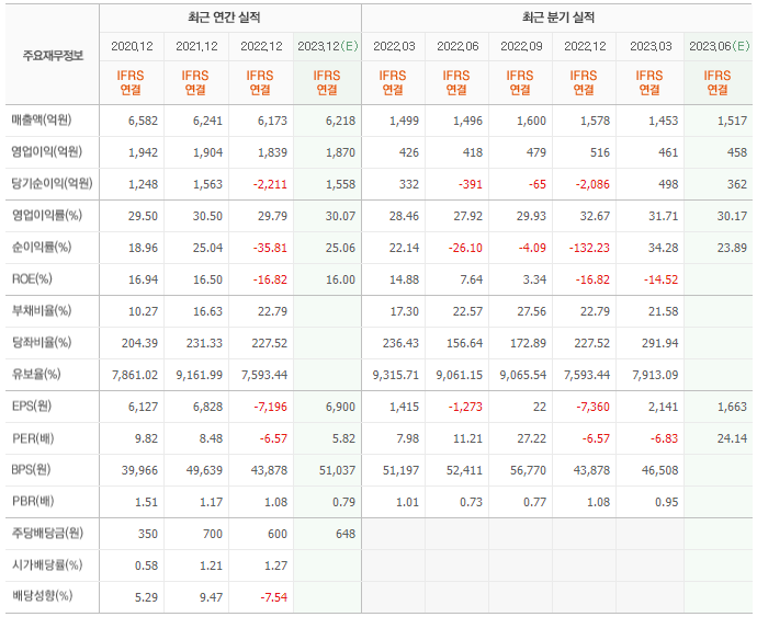 2022년 실적은 6173억, 영업이익은 1839억입니다. 그리고 영업이익률은 29.79%입니다.
