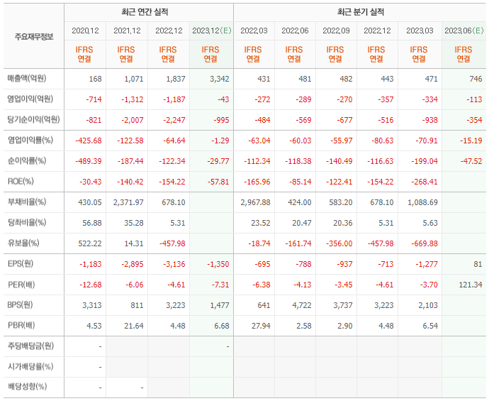 2022년 실적은 1837억, 영업이익은 -1187억입니다. 그리고 영업이익률은 24.35%입니다.