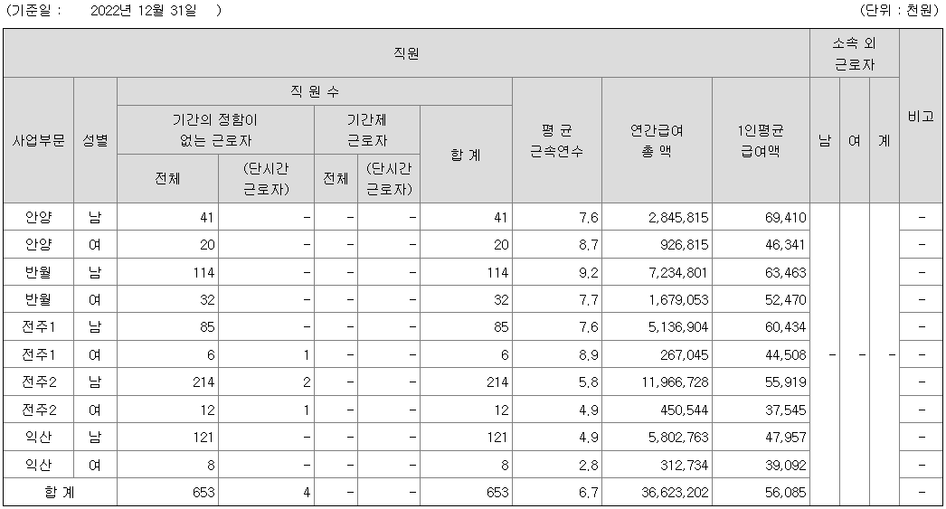 전체 평균연봉은 5600만원이고 직원수는 653명입니다.