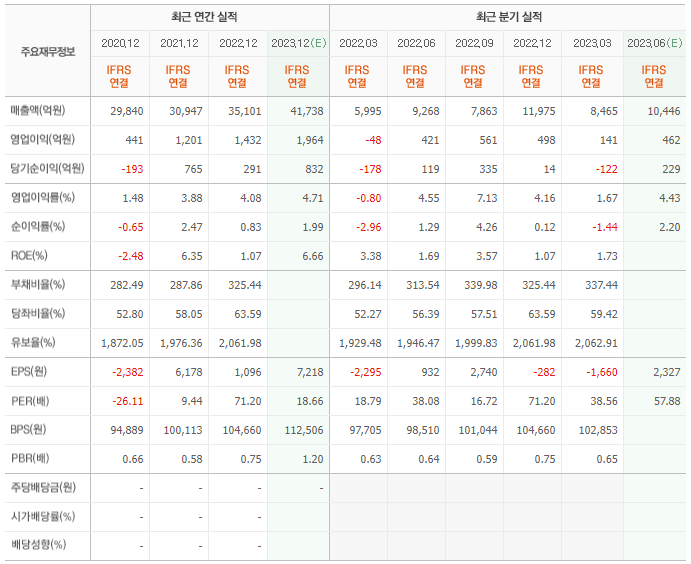 2022년 실적은 3조 5101억, 영업이익은 1432억입니다. 그리고 영업이익률은 24.35%입니다.