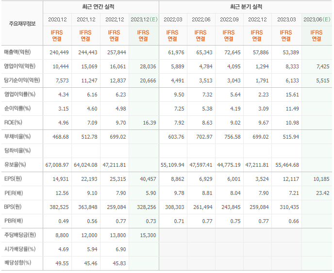 2022년 실적은 25조 7844억, 영업이익은 1조 6061억입니다. 그리고 영업이익률은 6.23%입니다.