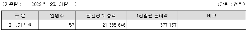미등기임원의 평균연봉은 3억 7700만원이고 직원수는 57명입니다.