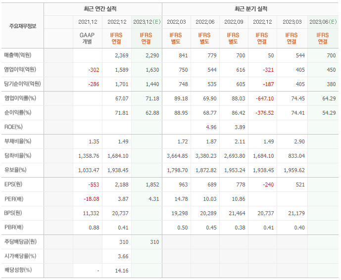 2022년 실적은 2369억, 영업이익은 1589억입니다. 그리고 영업이익률은 24.35%입니다.