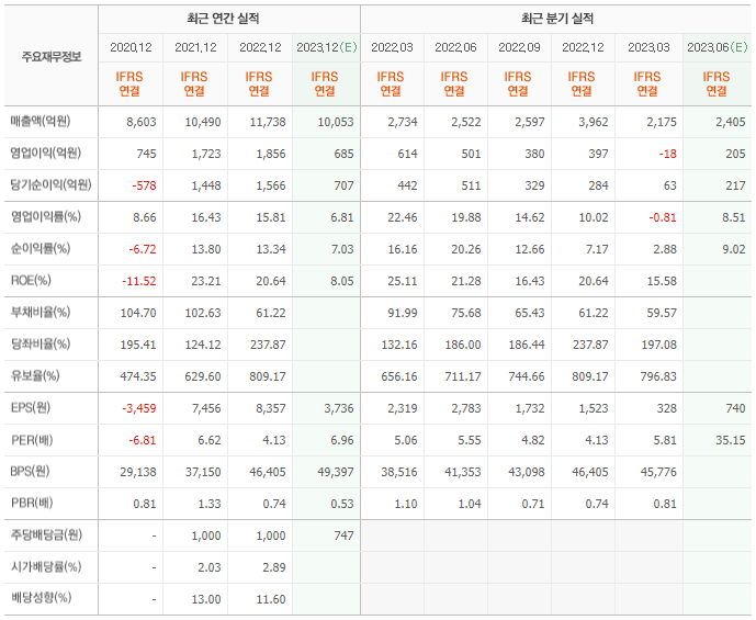 2022년 실적은 1조 1738억, 영업이익은 1856억입니다. 그리고 영업이익률은 15.81%입니다.