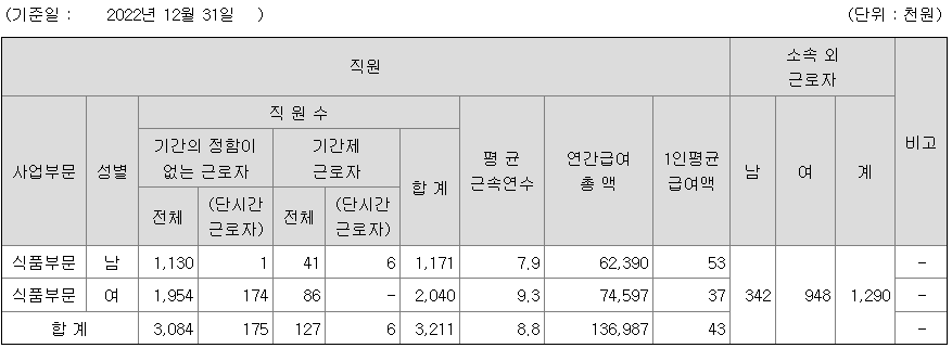 | 식품부문 | 여 | 2,040 | 9.3 | 37 |