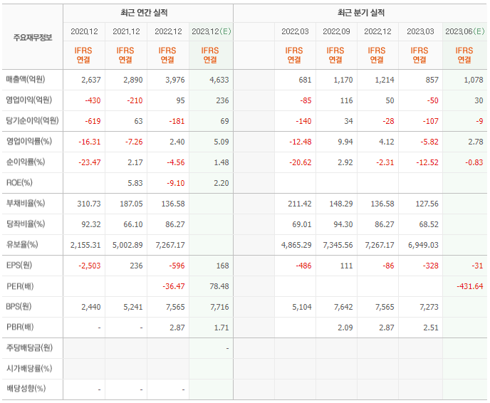 2022년 실적은 3976억, 영업이익은 95억입니다. 그리고 영업이익률은 2%입니다.