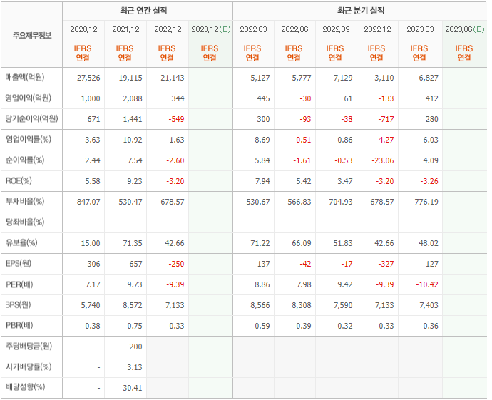 2022년 실적은 2조 1143억, 영업이익은 344억입니다. 그리고 영업이익률은 1.63%입니다.
