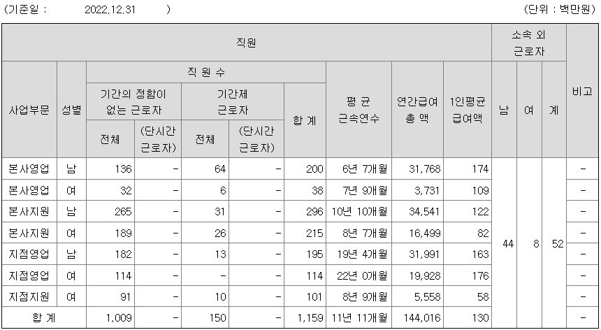 | 지점영업 | 여 | 114 | 22년 0개월 | 176 |