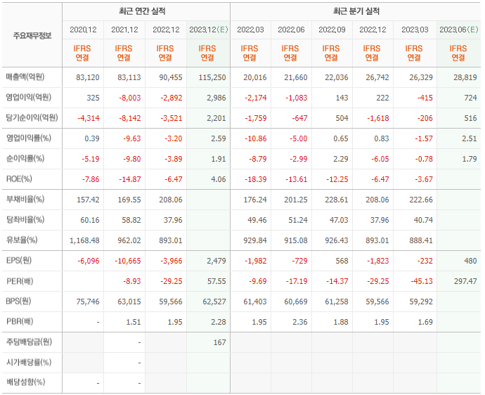 2022년 실적은 9조 455억, 영업이익은 -2892억입니다. 그리고 영업이익률은 -3.20%입니다.