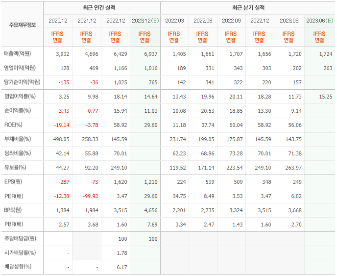 2022년 실적은 6429억, 영업이익은 1166억입니다. 그리고 영업이익률은 18.14%입니다.