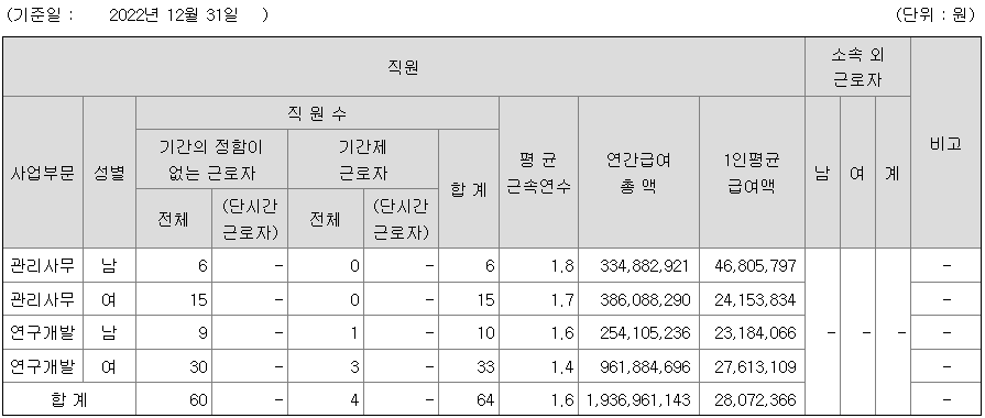 프레스티지바이오파마 연봉 2022년 기준 공시자료