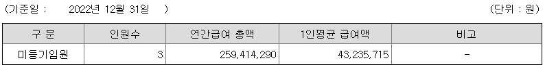 미등기임원의 평균연봉은 4300만원이고 직원수는 3명입니다.