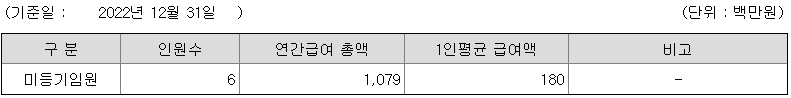 미등기임원의 평균연봉은 1억 8000만원이고 직원수는 6명입니다.