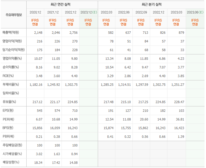 2022년 실적은 2756억, 영업이익은 270억입니다. 그리고 영업이익률은 9.80%입니다.