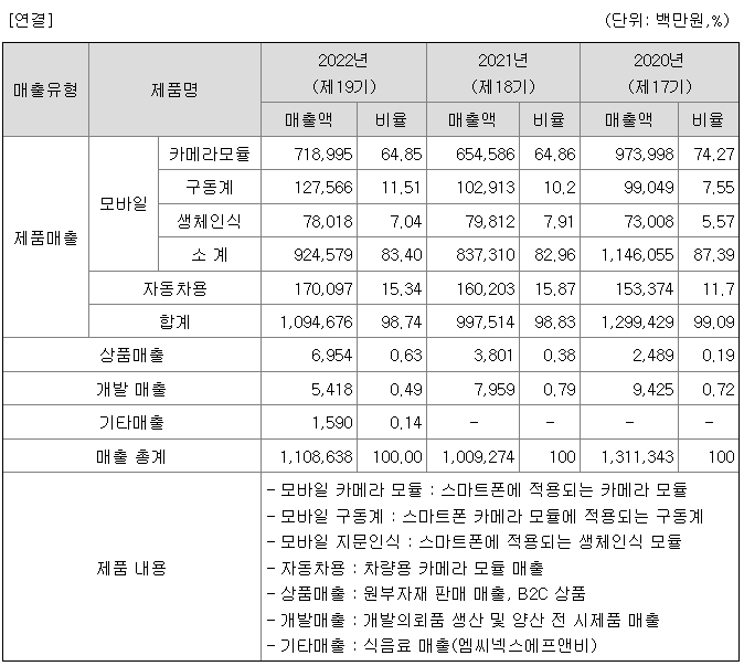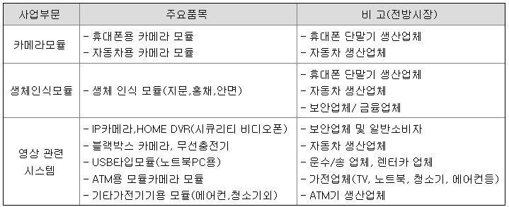 카메라 모듈 시장의 확장성에도 불구하고, 휴대폰용 카메라모듈 산업은 여전히 전체 카메라모듈 시장에서 50% 이상의 절대적 비중을 차지하고 있습니다. 이러한, 휴대폰용 카메라 모듈 시장은 스마트폰 카메라가 점차 멀티카메라로 불리는 Dual, Triple, Quad, Penta Camera로 진화하는 등 스마트폰 내의 카메라 수가 증가 하는 것에 기인합니다.