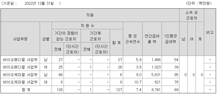 | 케미컬 사업부 | 여 | 8 | 10.7 | 78 |
