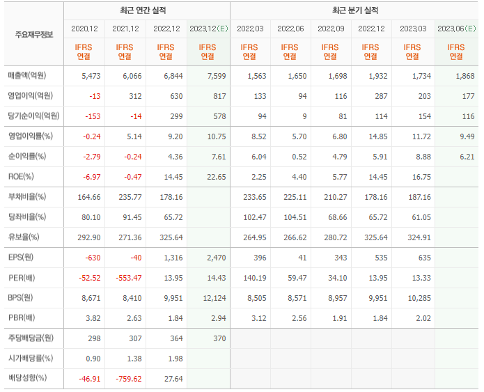 2022년 실적은 6844억, 영업이익은 630억입니다. 그리고 영업이익률은 9.20%입니다.