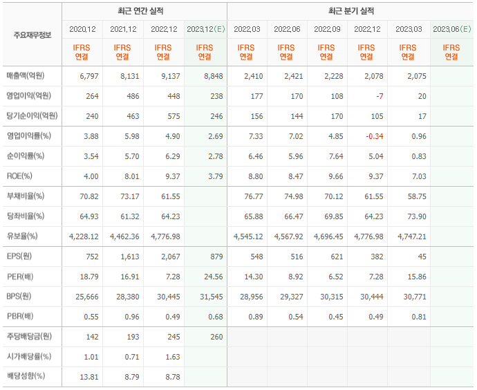 2022년 실적은 9137억, 영업이익은 448억입니다. 그리고 영업이익률은 4.90%입니다.