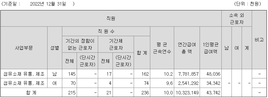 | 섬유소재 유통, 제조 | 남 | 162 | 10.2 | 48 |