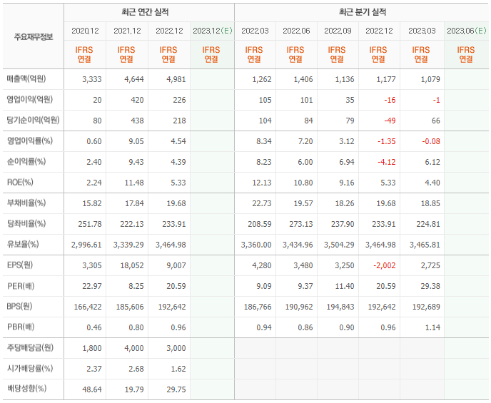 2022년 실적은 4981억, 영업이익은 226억입니다. 그리고 영업이익률은 4.54%입니다.