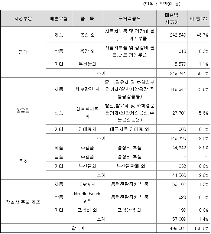 1. 주요 제품 등의 현황
