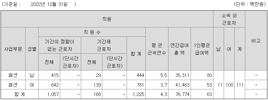 당사는 지난 2006년 11월 1일 LG상사로부터 분할 후 신설된 법인으로서, 분할 전의 패션부문을 승계 받아 핵심역량 및 전문성을 강화하여 패션 선두기업으로 도약하고 있습니다. 당사의 재무구조는 2022년 12월 31일 현재 연결 대차대조표에 따르면 유동비율은 181%로 매우 안정적인 수준이며, 부채 비율은 56%로 건실한 모습을 갖추고 있어 향후 적극적인 패션 사업을 전개해 나갈 수 있는 여건을 형성하고 있습니다.