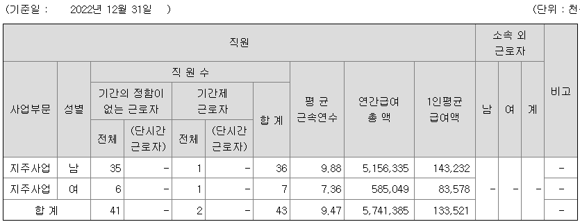 미등기임원의 평균연봉은 2억 7400만원이고 직원수는 6명입니다.
