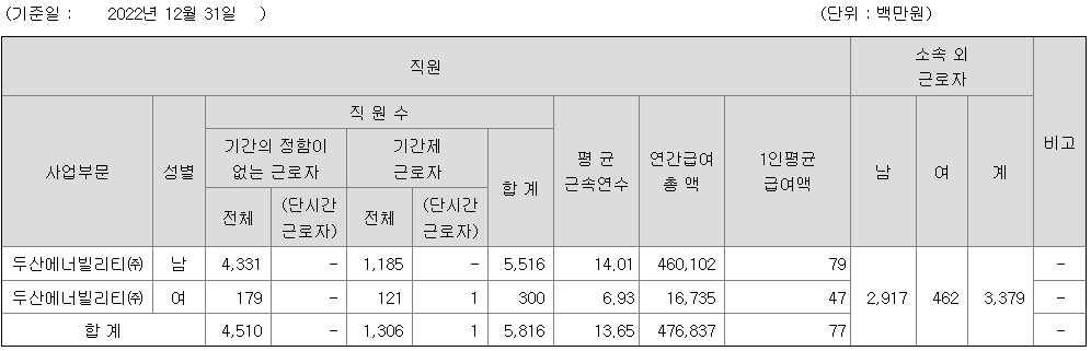 | 두산에너빌리티 | 남 | 5,516 | 14.01 | 79 |