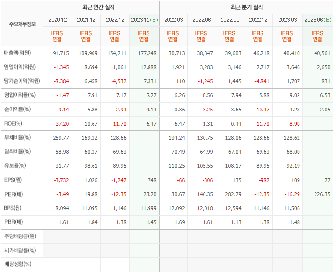 2022년 실적은 15조 4211억, 영업이익은 1조 1061억입니다. 그리고 영업이익률은 7.17%입니다.