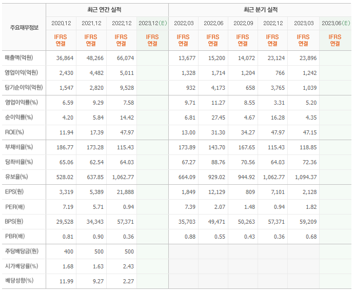 2022년 실적은 6조 6074억, 영업이익은 5011억입니다. 그리고 영업이익률은 7.58%입니다.