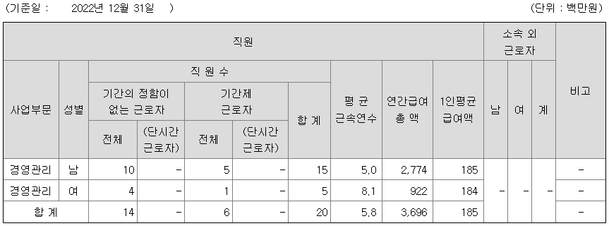 미등기임원의 평균연봉은 3억 1300만원이고 직원수는 6명입니다.