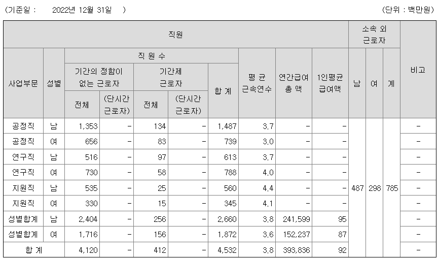삼성바이오로직스 연봉 2022년 기준 공시자료