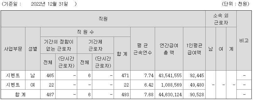 | 시멘트 | 남 | 471 | 7.74 | 92 |