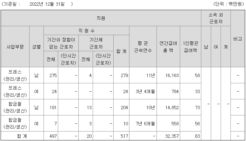 | 휴스틸 연봉 2022년 기준 공시자료 (0) | 2023.06.02 |