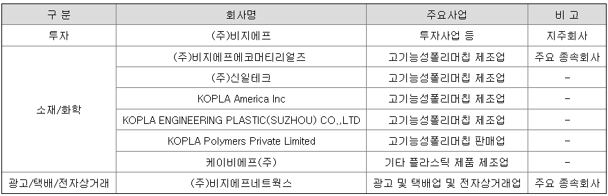 당사는 2018년 3월 9일 기준으로 '독점규제 및 공정거래에 관한 법률' 제2조 1의 2호 및 동법 시행령 제2조에 따른 지주회사 요건을 충족하였으며 공정거래위원회로부터 18년 3월 9일 현재 지주회사의 기준을 충족하고 있다는 내용의 심사결과 통지서를 18년 7월 16일자로 접수하였습니다. 이를 통해 기업지배구조의 투명성을 확립하고 궁극적으로 기업가치와 주주가치를 제고하고자 합니다.